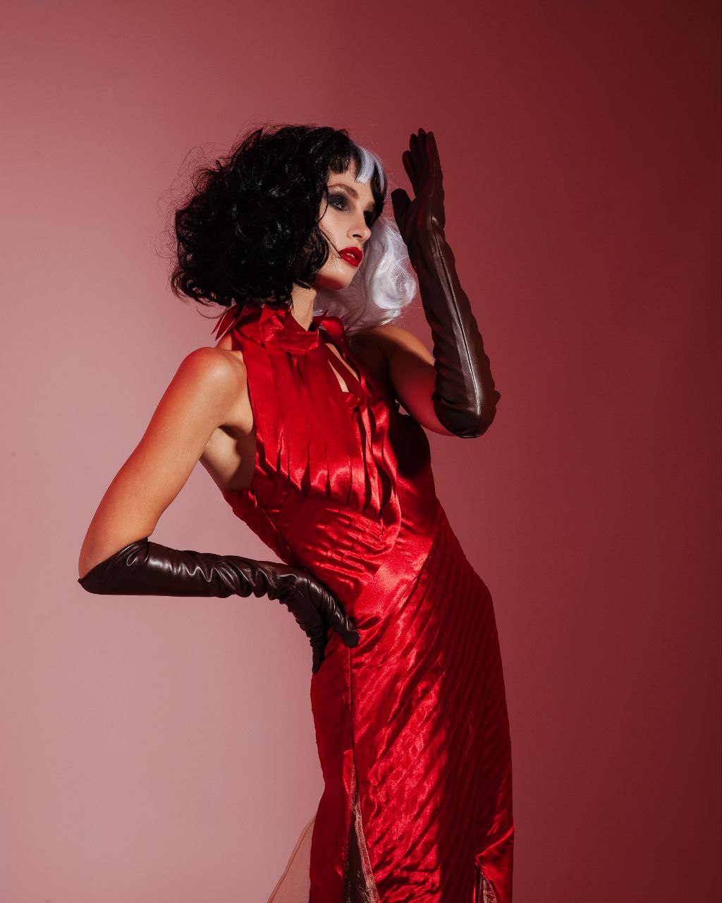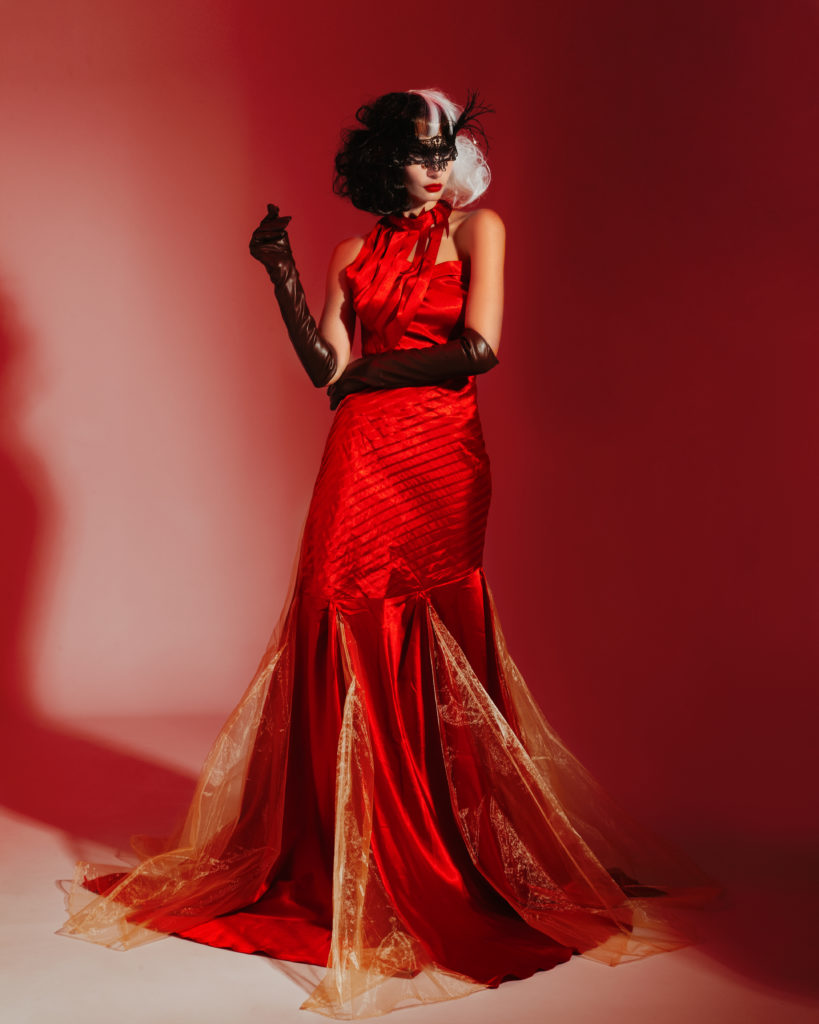 Культовий та бунтарський образ Круелли , натхненний естетикою панк-року та високої моди. Ця розкішна червона сукня — втілення впевненості та сили, створена для тих, хто не боїться бути в центрі уваги. Асиметричний крій та багата фактура тканини роблять цей аутфіт істинним шедевром «темного гламуру».