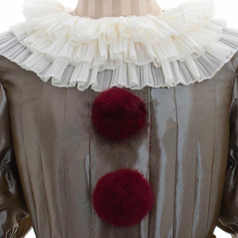 Костюм є високоточною реплікою вбрання Пеннівайза. На відміну від типових яскравих клоунів, цей образ виконаний у приглушених, "брудних" тонах, що створює ефект старовинного одягу, який десятиліттями чекав на свою жертву в каналізації.