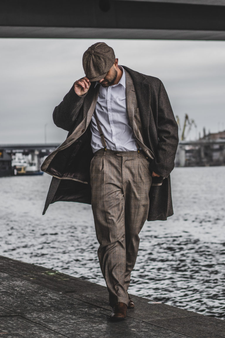 Стриманий та практичний чоловічий образ у стилі «робітничої класи» та вуличного шику 1920-х років. Поєднання грубих фактур твіду та вовни створює образ впевненого чоловіка, натхненний естетикою серіалу «Гострі картузи».