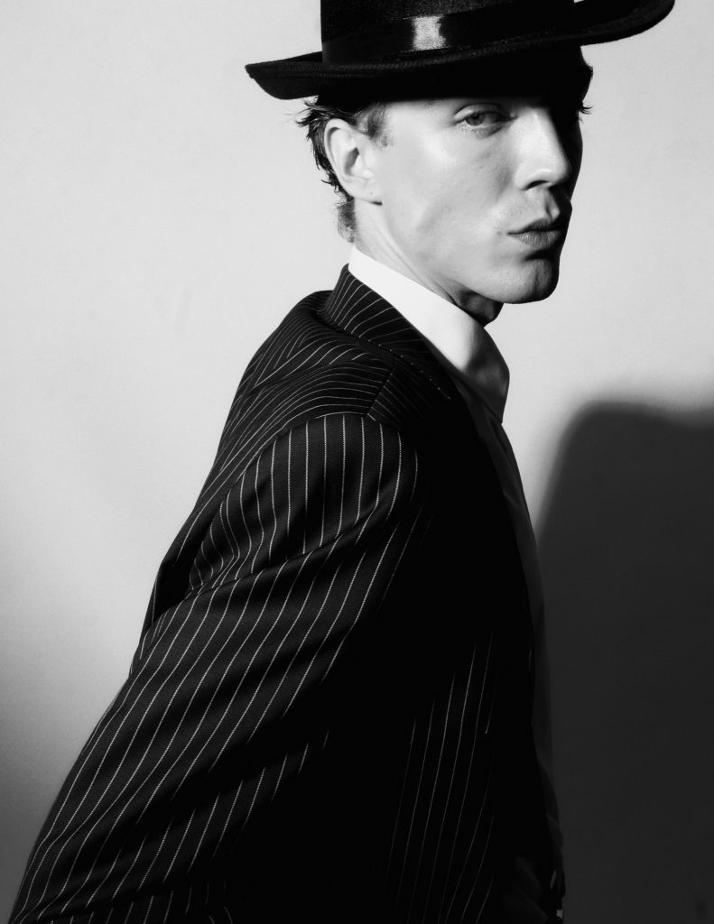 Класичний чоловічий ансамбль у стилі «гангстерського шику», що втілює сувору елегантність та силу епохи «сухого закону». Тонка вертикальна смужка та бездоганні аксесуари створюють образ харизматичного джентльмена, готового до підпільних ігор великого міста.