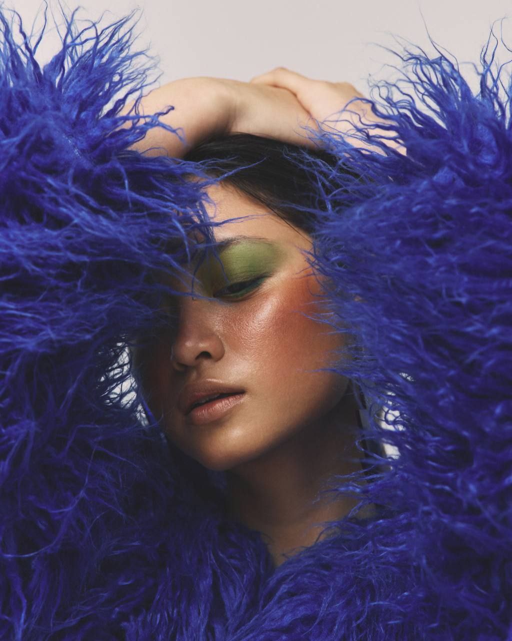 Ефемерний та романтичний образ, що переносить нас у світ небесних фантазій. Головним інструментом тут є напівпрозора фактура тканини, яка завдяки динаміці руху створює в кадрі відчуття польоту та невагомості. Це ідеальний вибір для художніх зйомок на білому фоні, де акцент робиться на грі світла, кольору та легкості силуету. Настрій образу — тендітна мрійливість, підкреслена вишуканими перловими аксесуарами та небесними принтами.