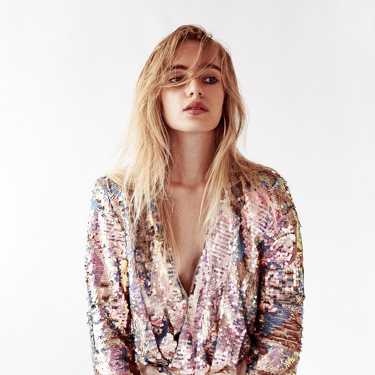 Деталі: Гладка зачіска та нюдовий макіяж підкреслюють аристократичність образу, дозволяючи кольору та фактурам одягу бути головними акцентами.