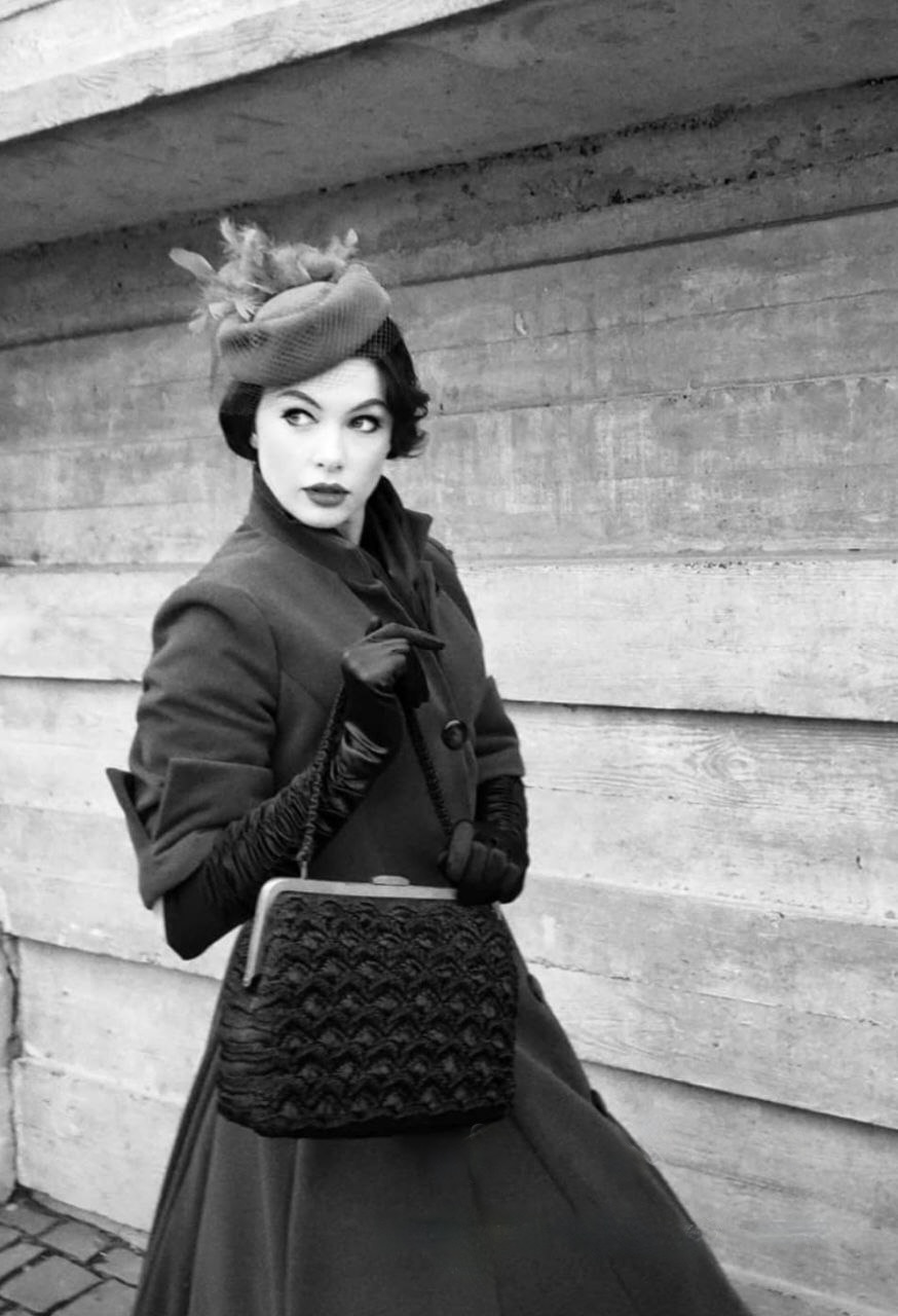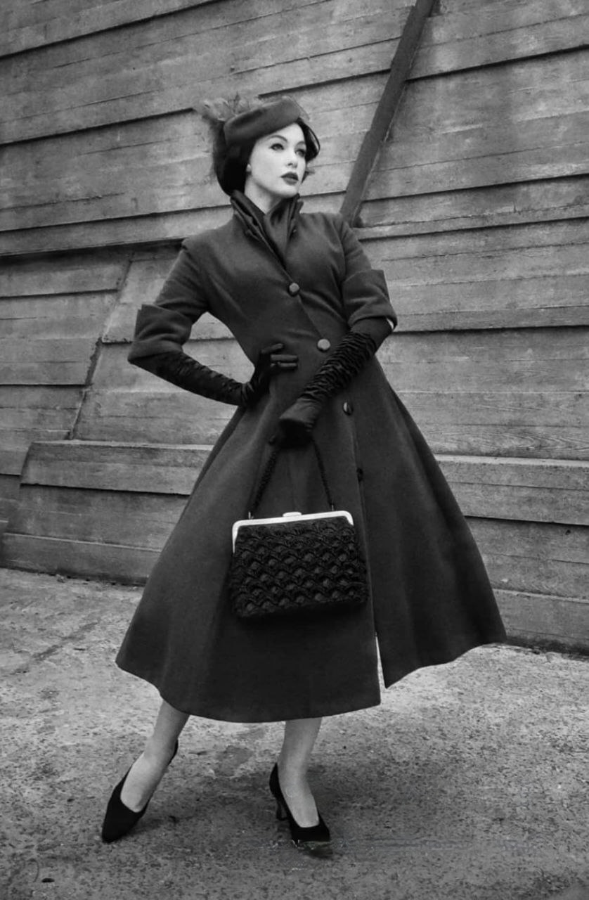 Драматичний та бездоганно елегантний образ у стилі "New Look", що втілює таємничість кінематографа 1940-х та 50-х років. Чорно-біла естетика підкреслює скульптурність силуету, створюючи образ фатальної жінки (femme fatale), сповнений аристократичного спокою та витонченості.