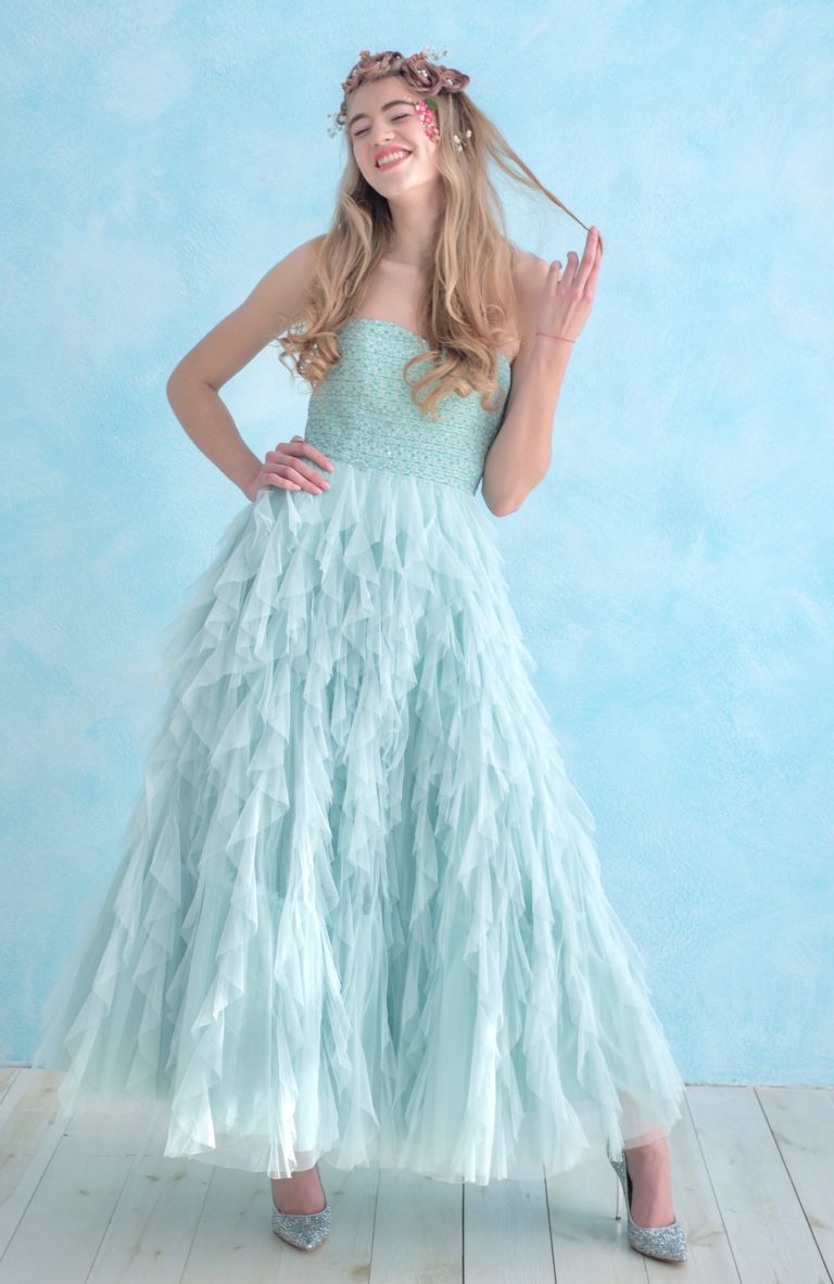 Романтична інтерпретація вечірнього образу, що переносить у світ казок та високої естетики. Цей лук наповнений легкістю повітря та свіжістю ранкової м’яти. Завдяки багаторівневим фактурам та ніжній палітрі, образ створює відчуття невагомості та магічної привабливості. Він ідеально підійде для випускних балів, літніх вечірок у саду або концептуальних фотосесій у стилі modern fantasy, де в центрі уваги — ефемерна краса та жіночність.