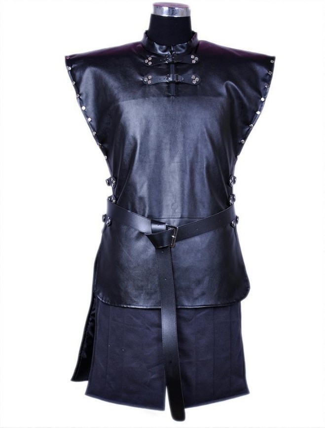 Верхній одяг: Масивна довга накидка чорного кольору, декорована густим штучним хутром на плечах, що створює характерний силует північного лорда Джона Сноу.