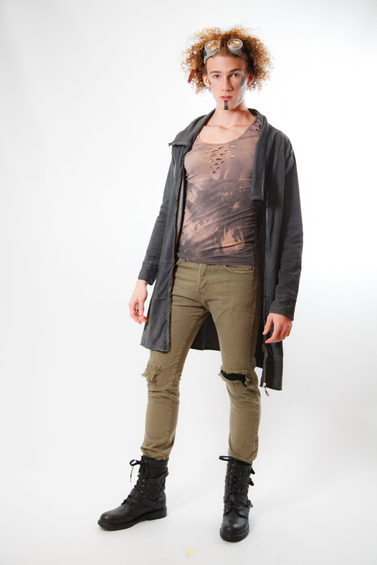 Цей образ втілює естетику виживання в індустріальній пустелі. "Wasteland Nomad" — це поєднання практичності та зухвалого стилю. Палітра земляних відтінків (оливковий, сірий, брудний пісочний) створює вигляд персонажа, який щойно повернувся з далекої розвідки або ремонту парового механізму під палючим сонцем. Поєднання багатошаровості та деструкції робить цей лук ідеальним для Хелловіну в дусі Mad Max або класичного стімпанку.